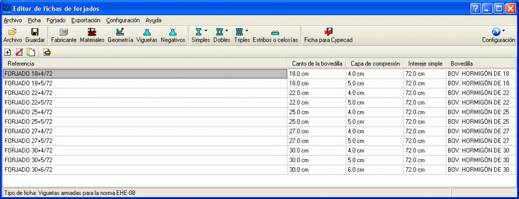 Editor de fichas de forjados de viguetas prefabricadas, armadas y pretensadas adaptado a la EHE-08