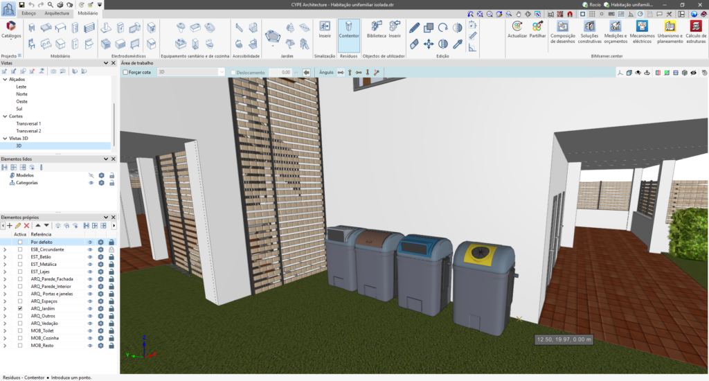 O CYPE Architecture passa a contar na versão 2025.d com novos elementos de mobiliário organizados em dois novos grupos: Acessibilidade e Resíduos.