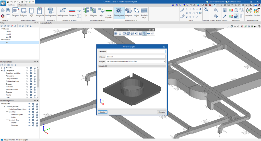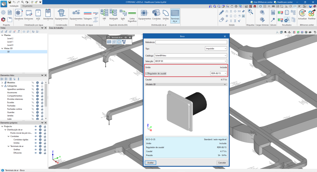 A partir da versão 2025.d, o CYPEHVAC inclui um novo módulo que permite o cálculo e o projeto de instalações de ventilação mecânica controlada (VMC). O programa oferece todos os elementos necessários para este tipo de instalações: condutas, recuperadores de calor, plenums, bocas de impulsão e extração, silenciadores, etc. de diferentes fabricantes.
