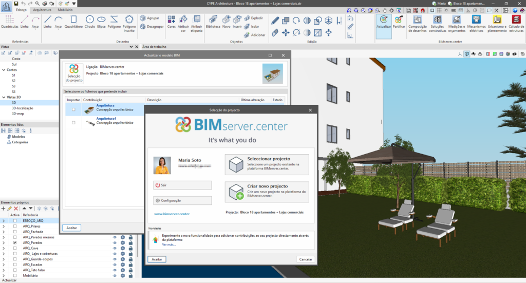 Agora pode criar novas contribuições diretamente a partir da página do projeto na plataforma web do BIMserver.center. - CYPETEL Project ITED-ITUR / CYPETEL Systems