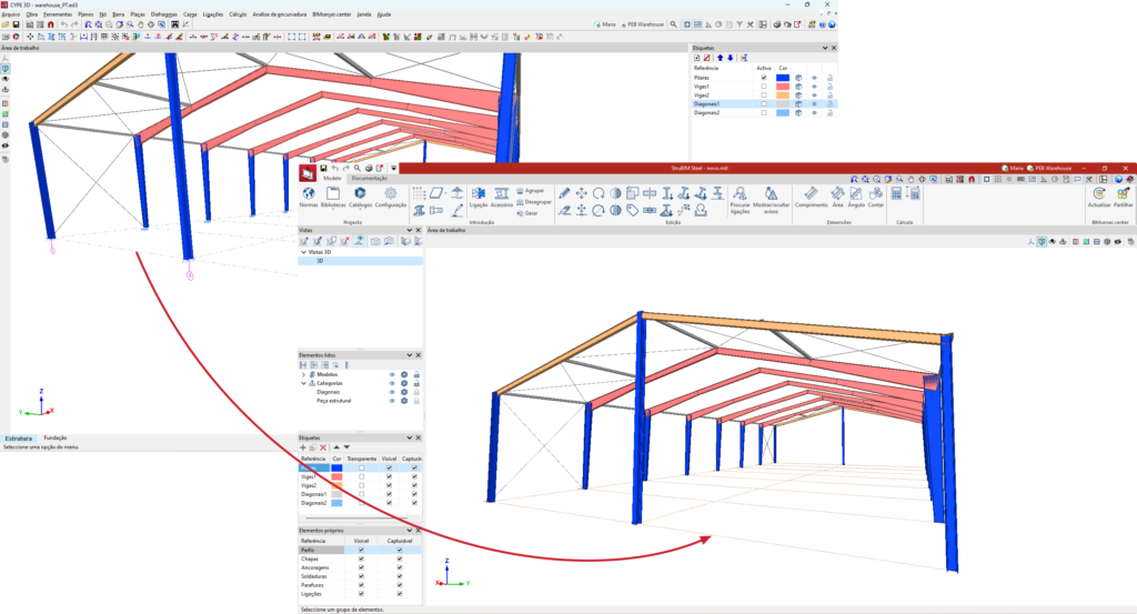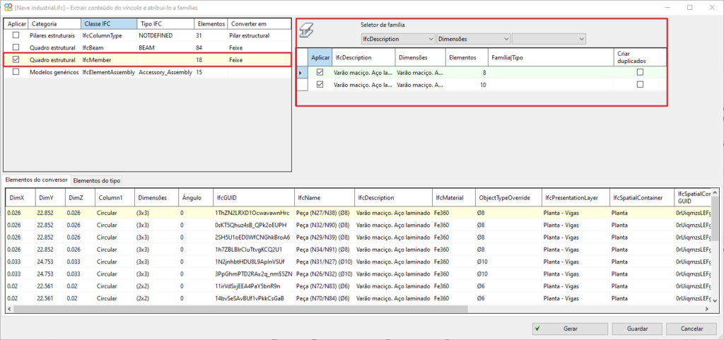 Representa elementos metálicos do tipo barra que fazem parte de um sistema estrutural. Com a sua implementação, estas barras serão classificadas como elementos pilar ou elementos viga, consoante a sua função dentro da estrutura, permitindo assim a sua conversão para elementos nativos sem perda de informação.