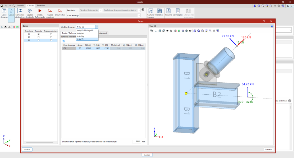 - Através da opção "Tensões admissíveis" (implementado na versão 2025.d)