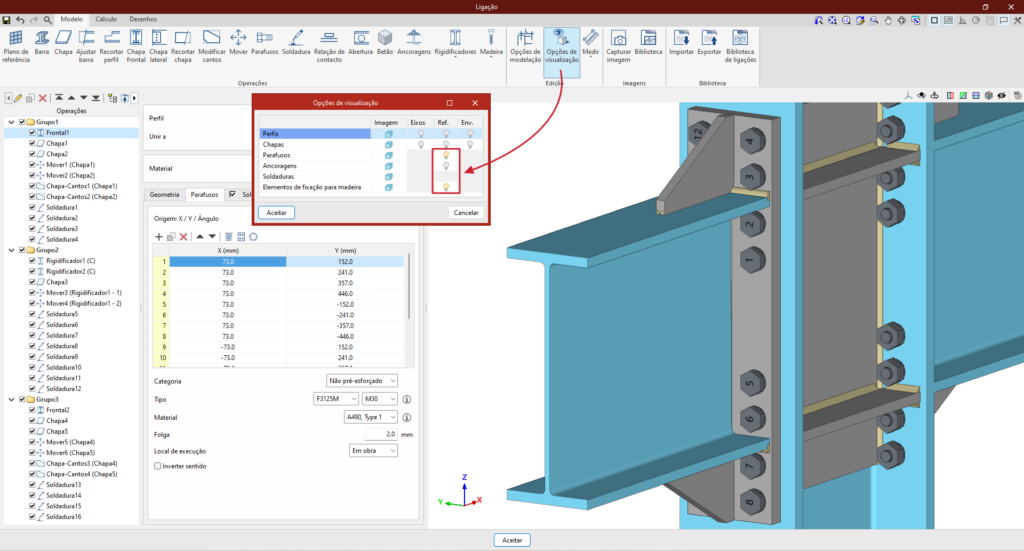 Esta funcionalidade permite uma maior precisão e rapidez no posicionamento dos elementos no modelo, evitando a necessidade de ajustes posteriores.