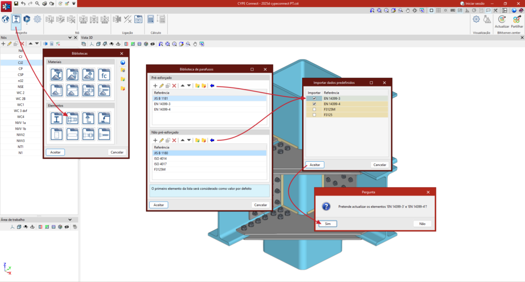 “CYPECAD”, “Maciços de encabeçamento de estacas” e “Estacas II: Verificação estrutural”. - Em CYPE 3D