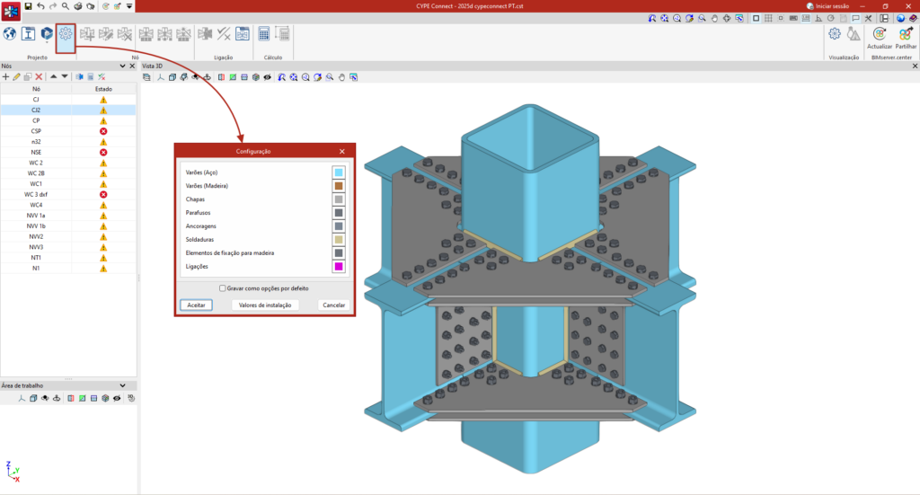 Esta seleção é feita na opção “Configuração avançada” (Menu Obra > Dados gerais > ícone “Elementos de fundação com vinculação exterior" > ícone "Configuração avançada").
