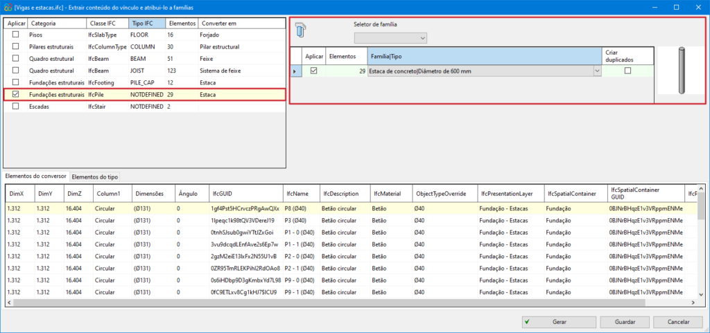 Nesta atualização, com o objetivo de ampliar e melhorar a classificação e a conversão de elementos estruturais, foram adicionadas duas novas categorias no conversor para entidades nativas do Revit: IfcPile e IfcMember.