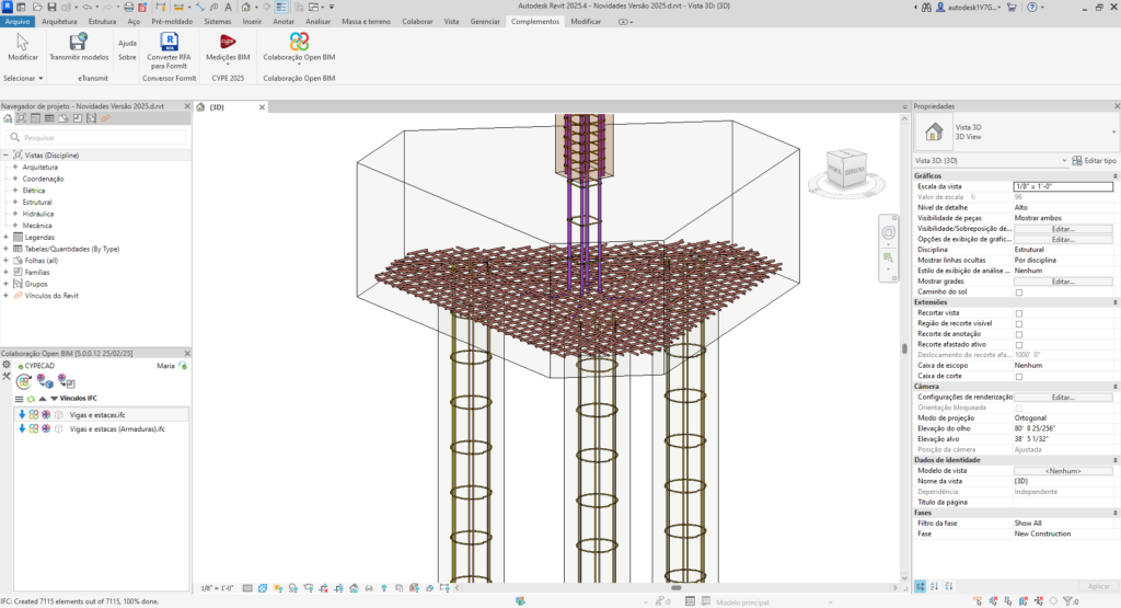 Para além da conversão dos elementos estruturais “estacas”, nesta versão 2025.d foi incorporada também a possibilidade de converter as armaduras das estacas para entidades nativas do Revit.