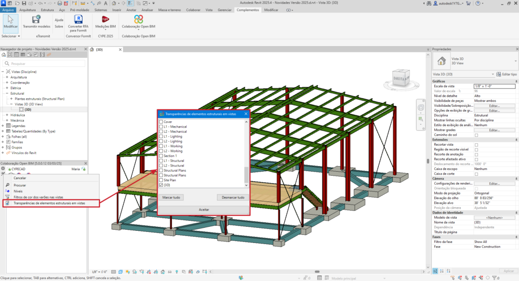 Permite modificar rapidamente a visibilidade de certas categorias estruturais no modelo Revit e, além disso, aplicá-las às vistas à escolha do utilizador, sem necessidade de modificar a visibilidade e o editor de visibilidade e gráficos do Revit.