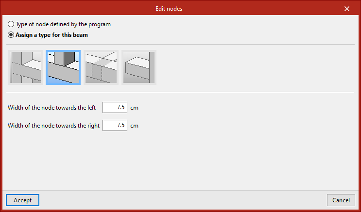 Ao introduzir duas barras cruzadas, é possível manter ativada a opção “Gerar nós em cruzamentos” dentro do grupo “Barras” para que o programa gere automaticamente um nó, definido como vinculação interior, no ponto de contacto das barras.