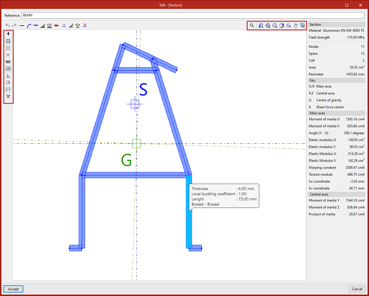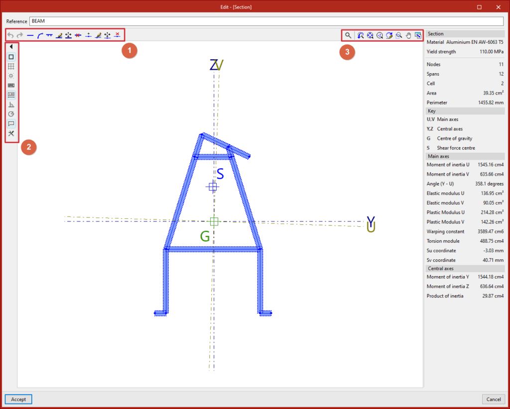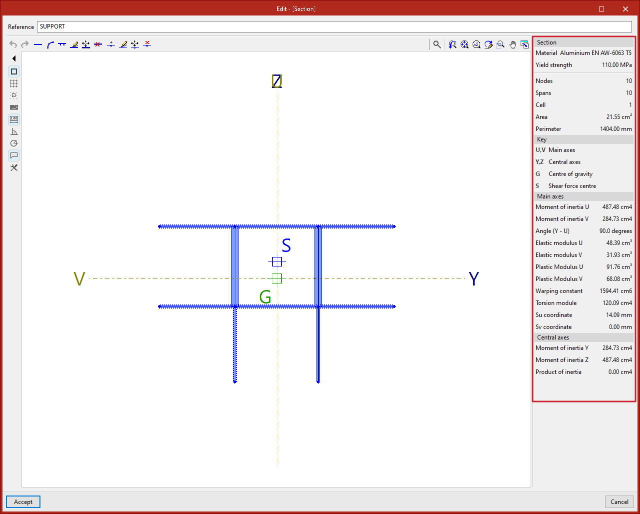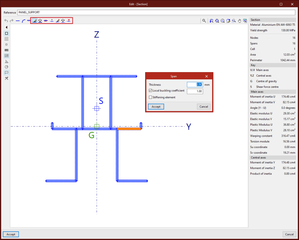A opção “Descrever secção” permite editar a geometria de um grupo de placas.
