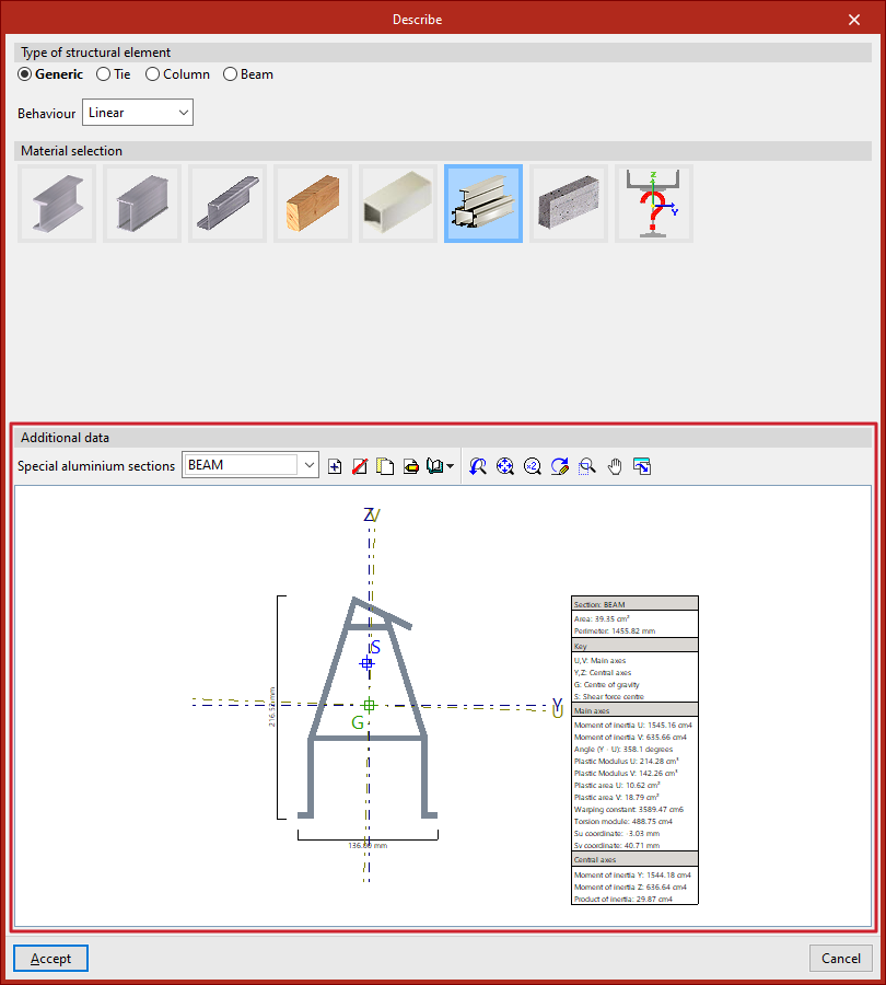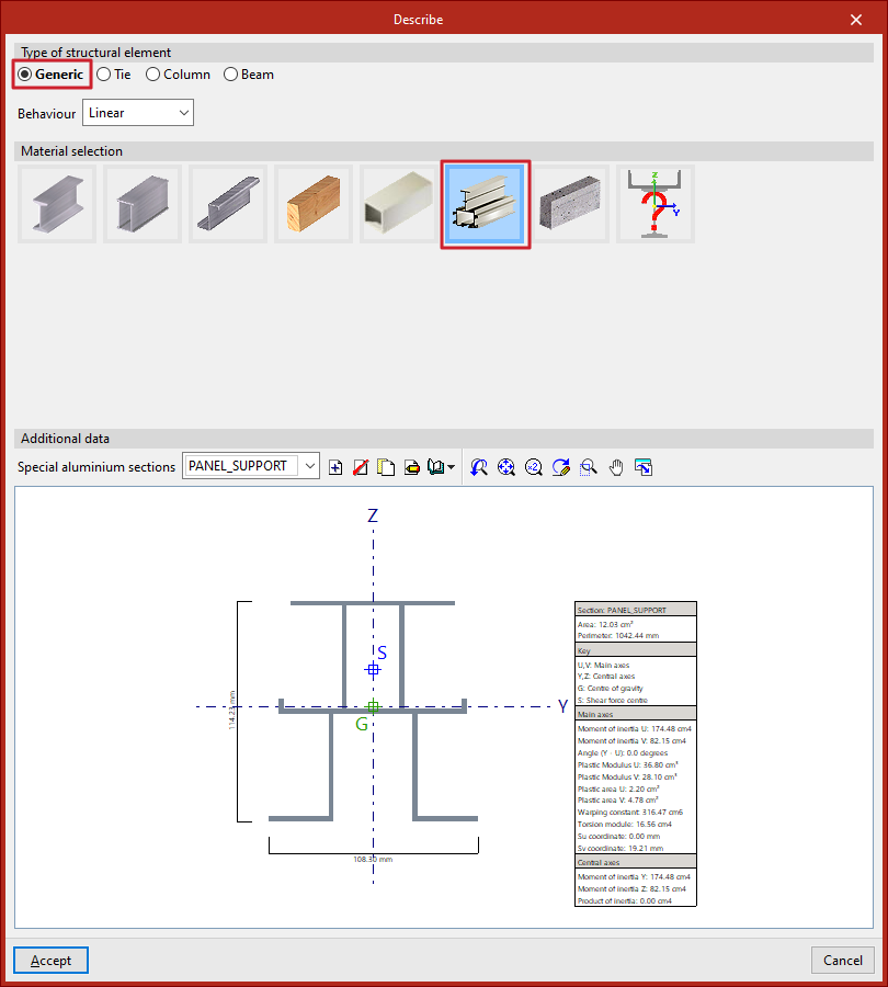 Nos pilares “Metálicos”, deve-se realizar a “Seleção do material” e a “Seleção do perfil” entre as opções disponíveis no programa, que são muito semelhantes às que aparecem na introdução de barras genéricas de aço laminado ou enformado.