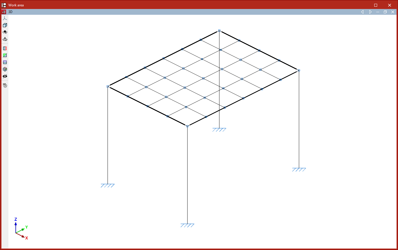 Cada barra é definida pelos seus nós inicial e final, pelo que, para a introduzir, deve selecionar dois pontos com o botão esquerdo do rato na “Área de trabalho”.