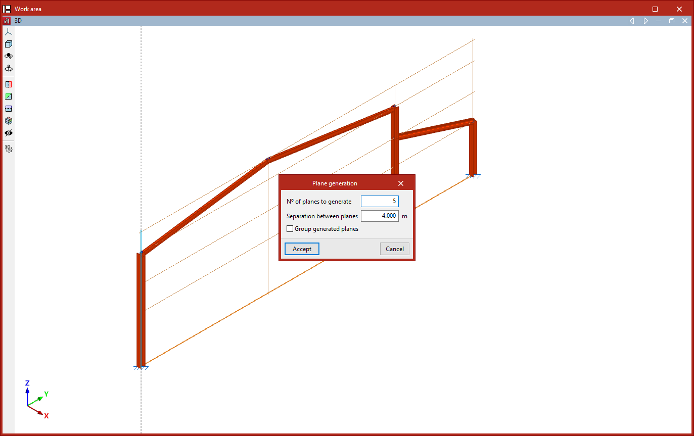 Após clicar em “Aceitar”, o programa gera os planos indicados e copia os dados introduzidos no plano original, incluindo os nós, as barras, as placas e as cargas.