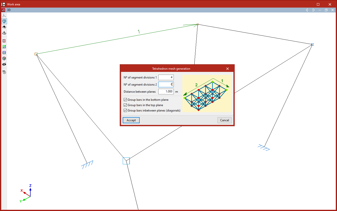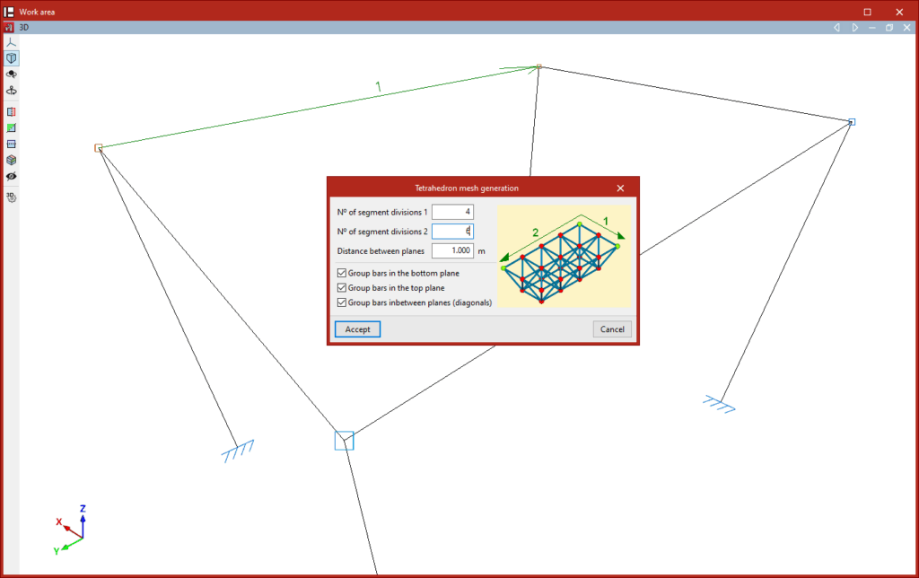 - A última opção permite “Agrupar barras entre planos”, ou seja, as diagonais que formam a malha de tetraedros.
