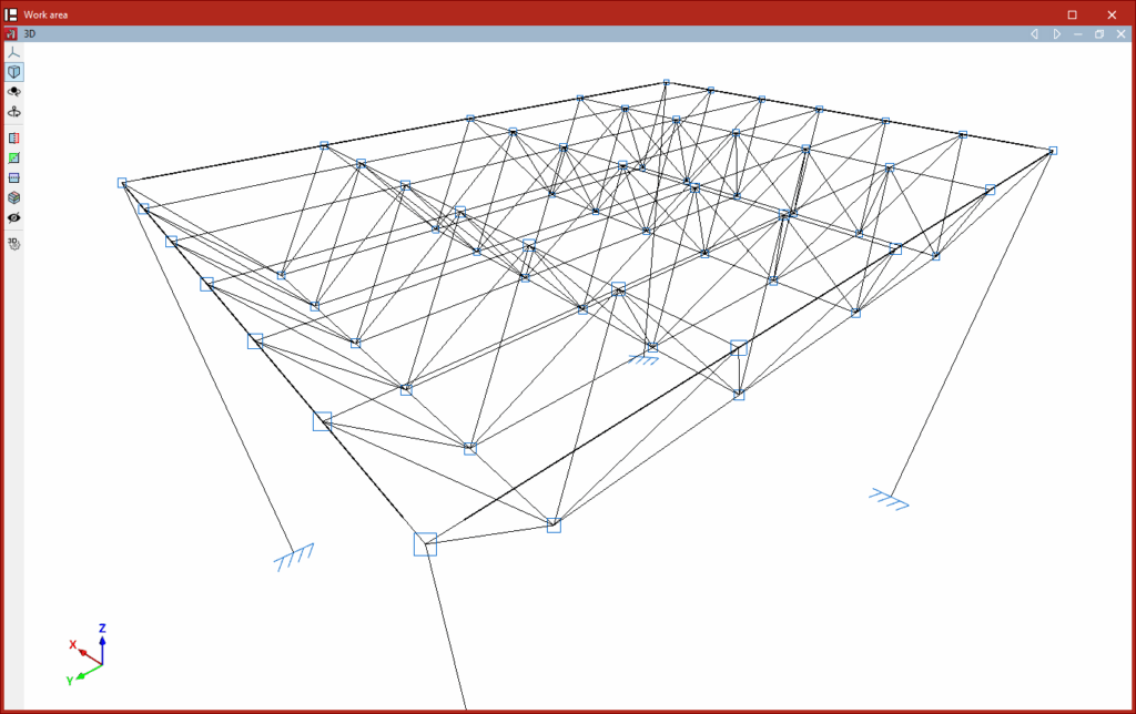 Por último, a geração pode ser espacial. Neste caso, após selecionar a opção “Nós e barras”, deve-se marcar com o botão esquerdo três segmentos.