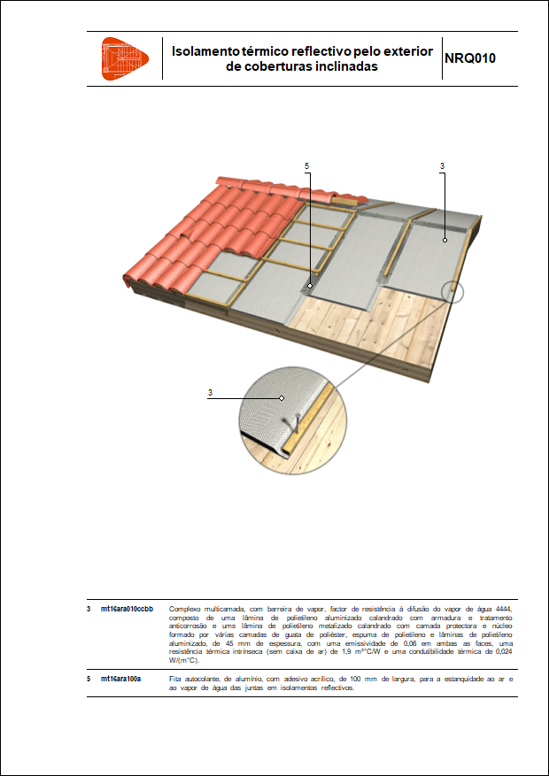 - Uma representação gráfica da unidade de obra na qual que são incluídos os vários materiais utilizados.