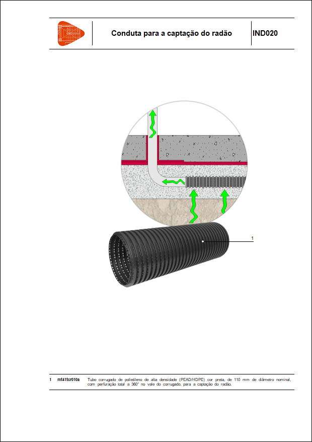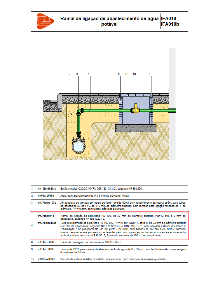 - Uma legenda na qual figuram os códigos e as descrições dos materiais representados.