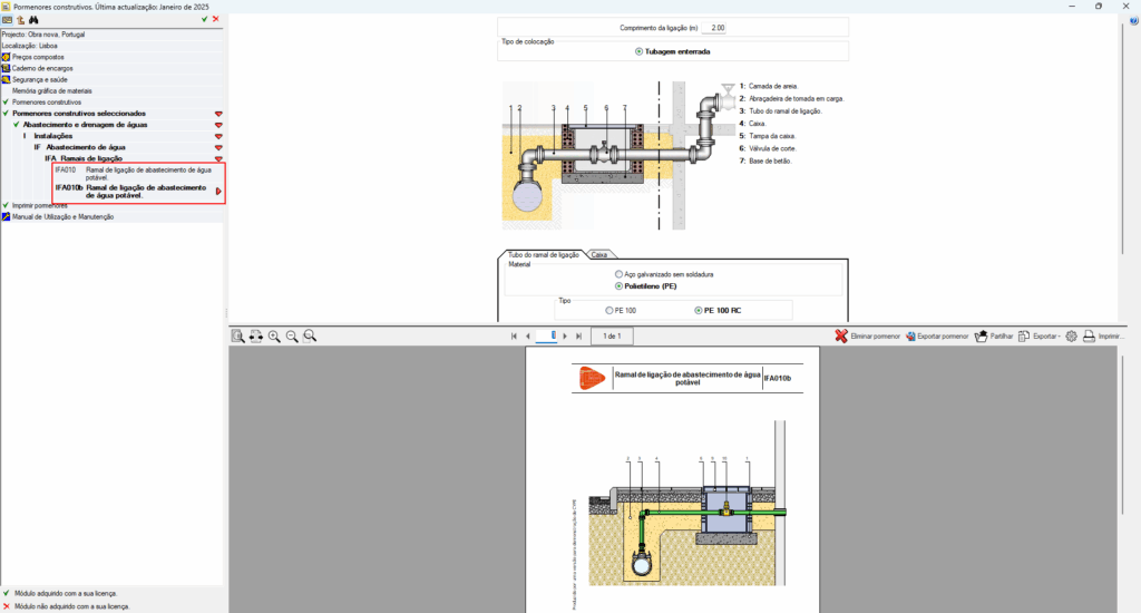 Deste modo, o utilizador pode acrescentar ao seu projeto os pormenores construtivos que selecionar, mesmo que não possua um orçamento prévio, bastando para isso na sua licença as permissões para utilizar os módulos de pormenores construtivos que necessite. A exportação dos pormenores construtivos pode ser realizada num único documento (nos formatos PDF, DOCX, HTML o RTF) ou em vários ficheiros (nos formatos DXF ou DWG).