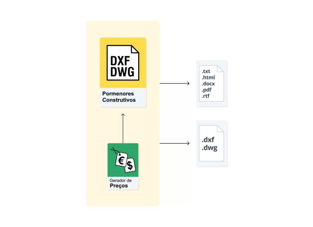 - Exportação dos pormenores construtivos nos formatos DXF e DWG.