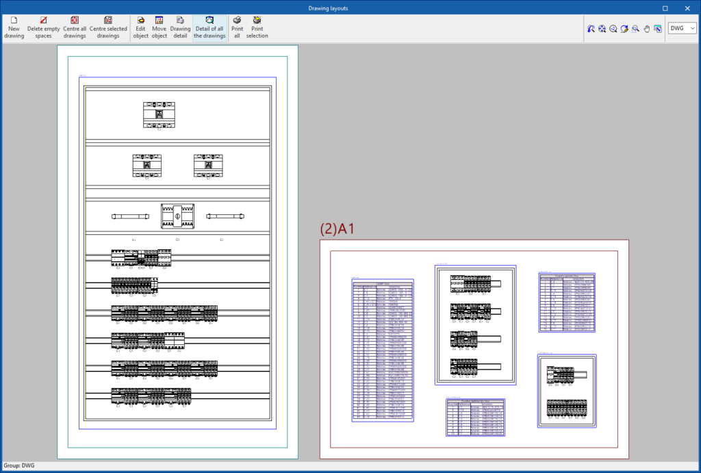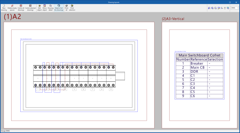O programa permite imprimir os desenhos dos quadros elétricos definidos em qualquer periférico gráfico configurado no computador, ou criar ficheiros .dwg, .dxf ou .pdf.