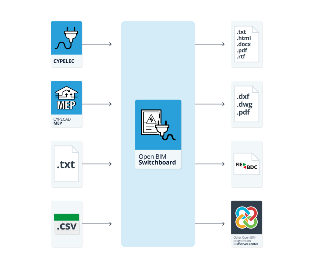 Vários programas da CYPE estão conectados com a plataforma BIMserver.center e possibilitam o trabalho multicolaborativo através compartilhamento de arquivos arquivos em formatos baseados em estândares abertos.