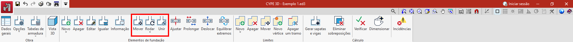 A opção "Mover" permite alterar a posição das sapatas e dos maciços.