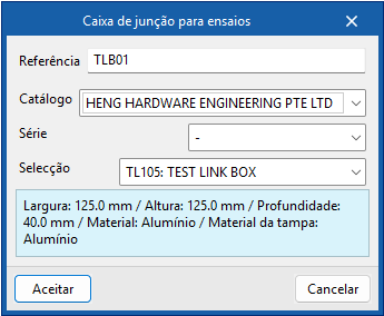 Referência da caixa de ligação para ensaios - Catálogo / Série / Seleção