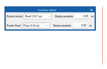 A definição do elemento é idêntica à que aparece ao utilizar a opção "Condutor", mas, neste caso, para a sua introdução, devem ser selecionadas duas plantas como "Ponto inicial" e "Ponto final" do condutor. Em cada uma delas, pode ser aplicado um "Deslocamento" para ajustar a cota desses pontos inicial e final.
