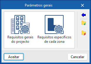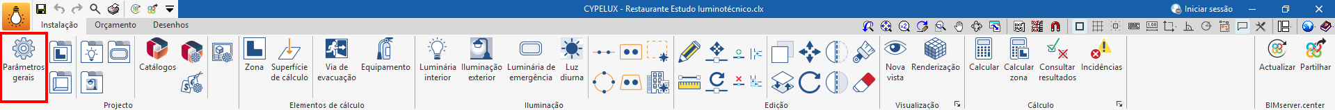 No bloco “Projeto” da barra de ferramentas principal do separador "Instalação" encontra-se a opção para configurar os “Parâmetros gerais” do projeto: