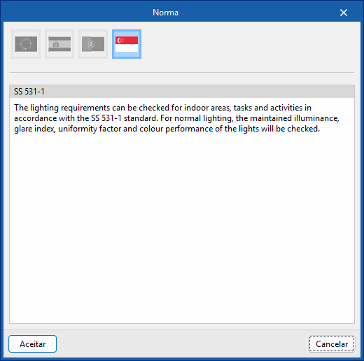 Permite importar os requisitos de iluminação exigidos pela norma SS 531-1.