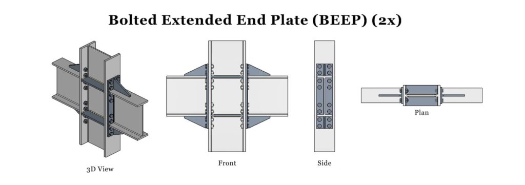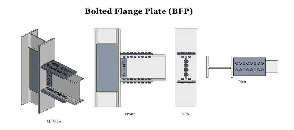 In this connection, the flanges and web of the beam are connected by plates bolted to the column. This ensures a fully bolted assembly, improving inspection and reducing the need for on-site welding.
