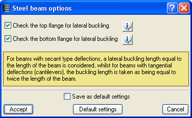 Checking of both webs is activated in the Options for steel beams dialogue box which can be accessed from the Job menu in the Beam Definition tab > Beam options > Steel beam options.