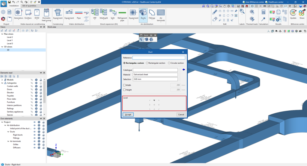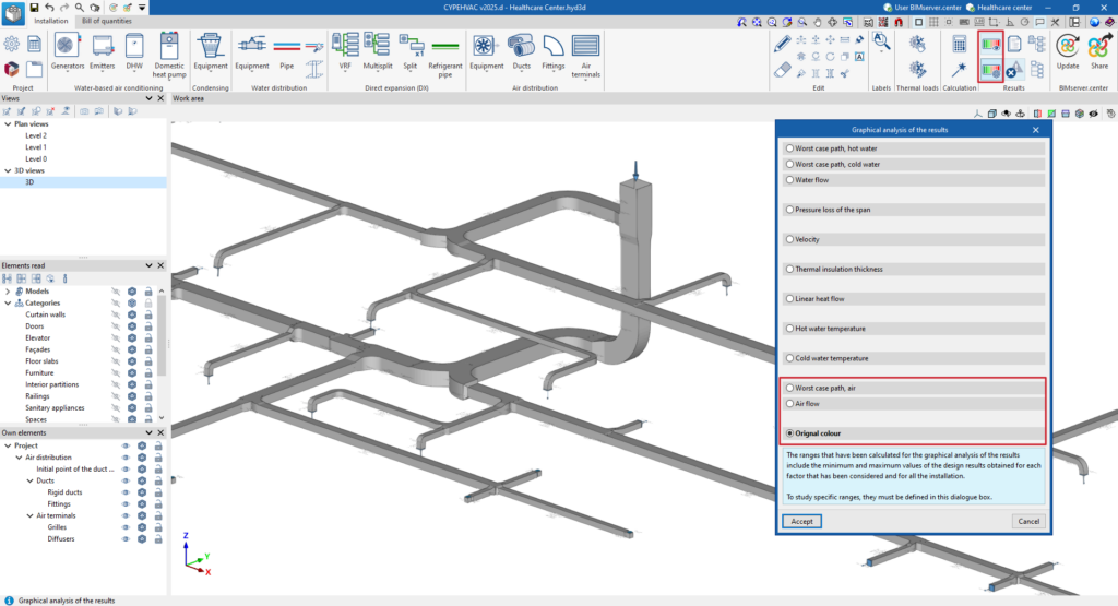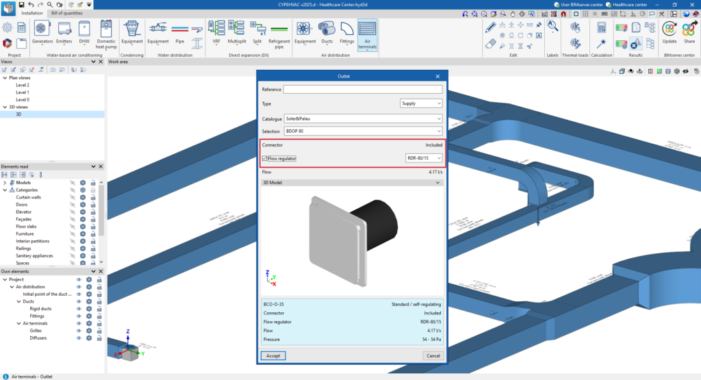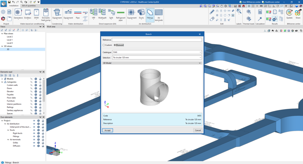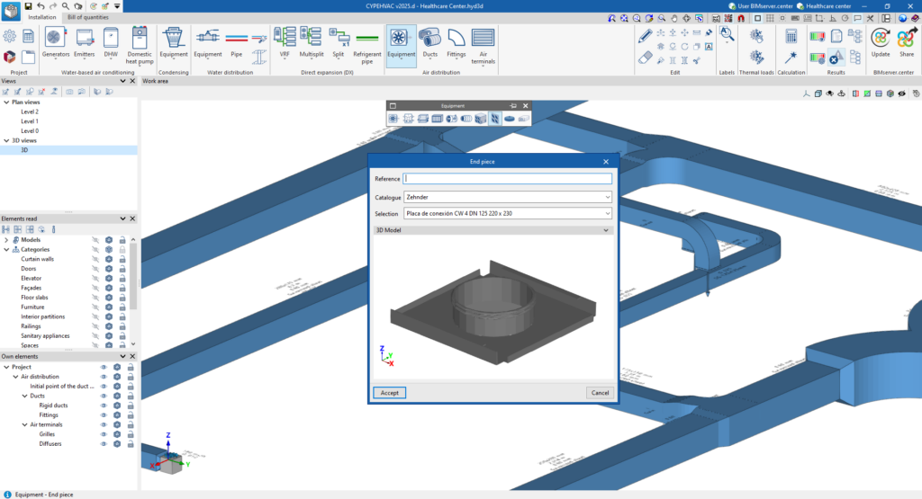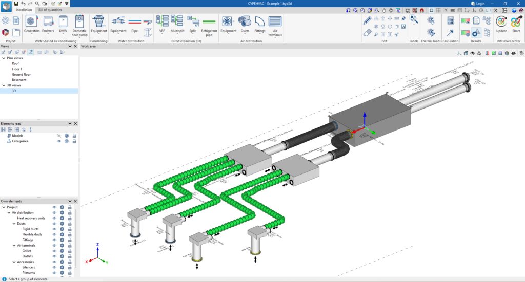 As of version 2025.d, CYPEHVAC includes a new module that can analyse and design controlled mechanical ventilation (CMV) systems. The program includes all the elements required for this type of installation: ducts, heat recovery units, plenums, supply valves and exhaust valves, silencers, etc. from different manufacturers.