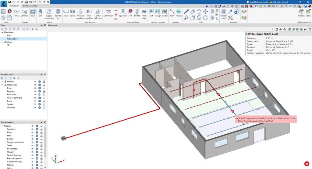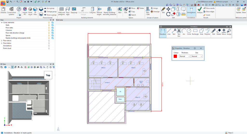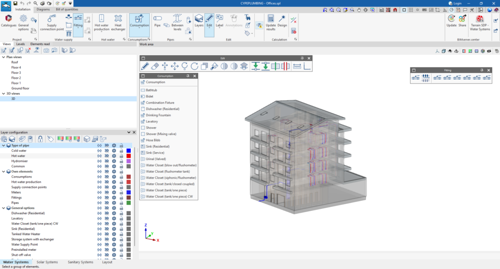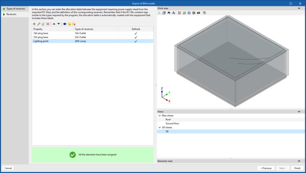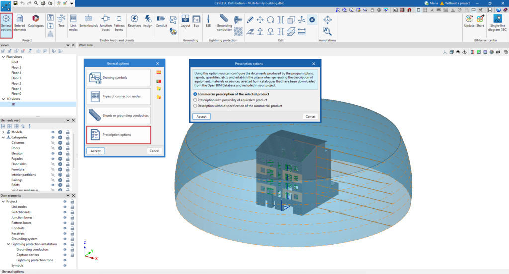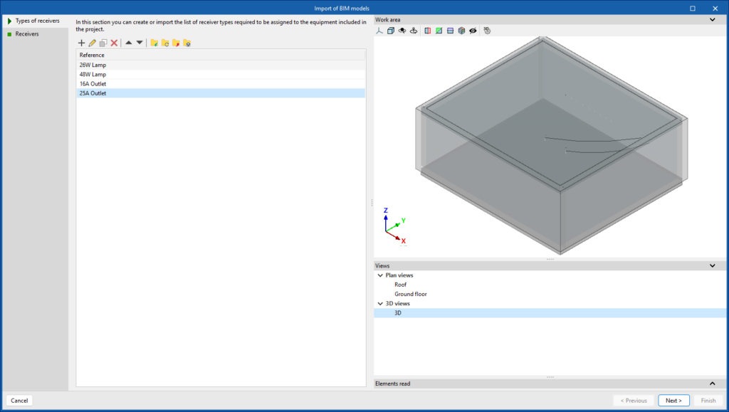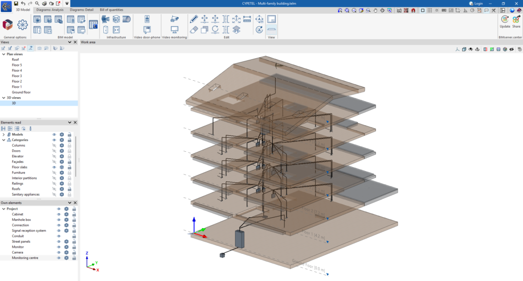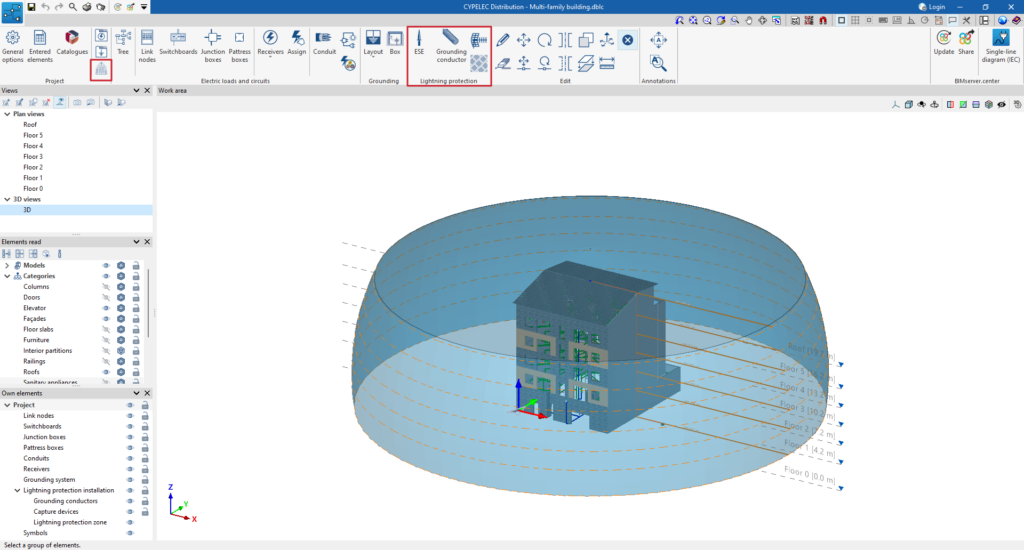 Work can be carried out on the 3D model of the building, so that elements can be selected on it, without having to locate them on the diagram in the tree.