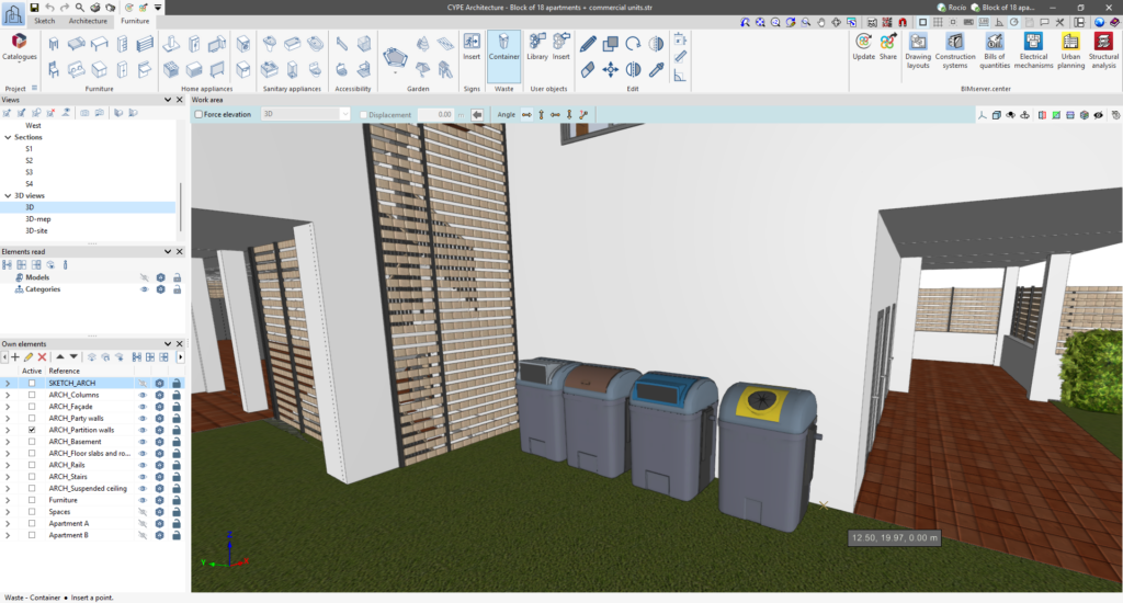 In version 2025.d, CYPE Architecture has new furniture elements grouped into two new sections: Accessibility and Waste.