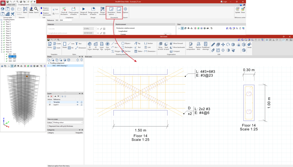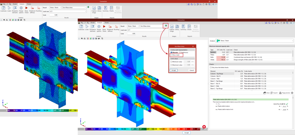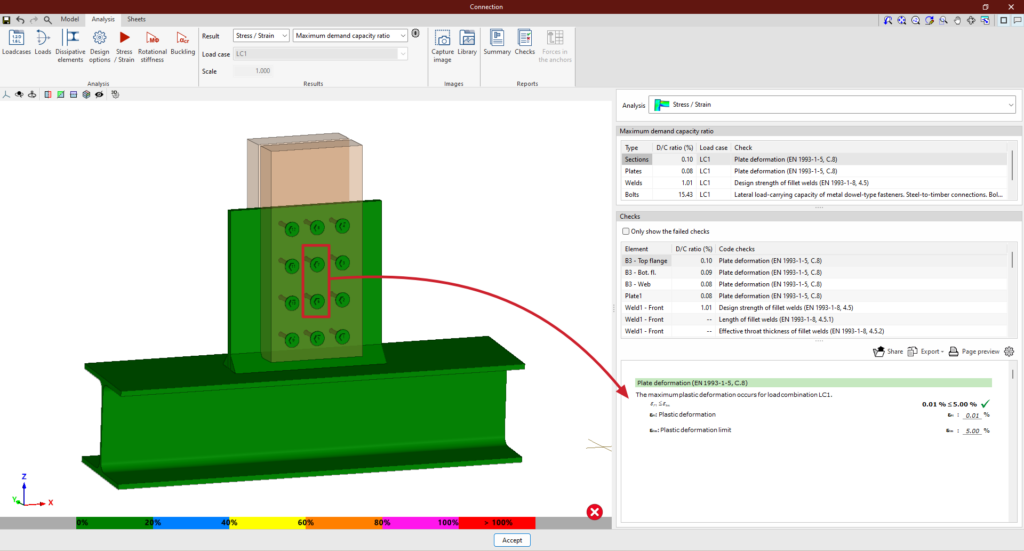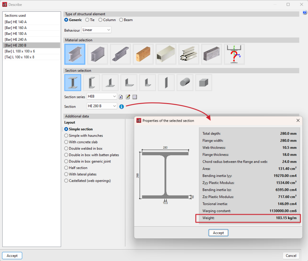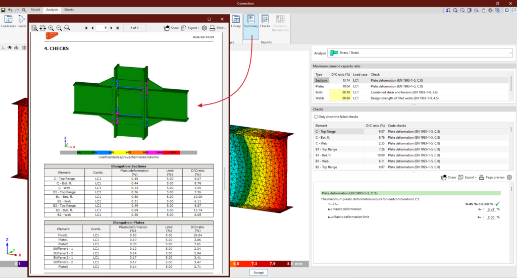 Implemented in CYPECAD, CYPE 3D and Portal frame generator for checking rolled and reinforced steel sections.