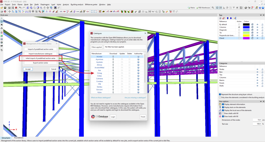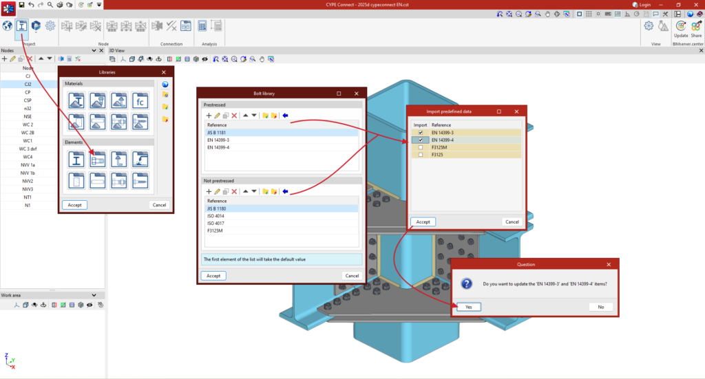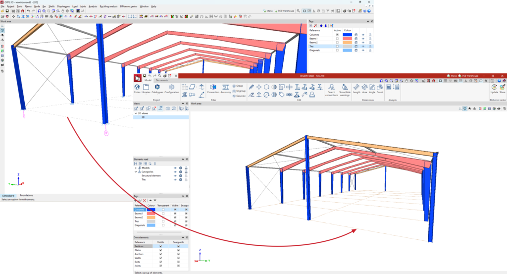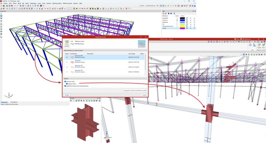 This feature can be used to import projects from CYPECAD or CYPE 3D that contain steel or composite structural components and their subsequent conversion to native Revit entities.