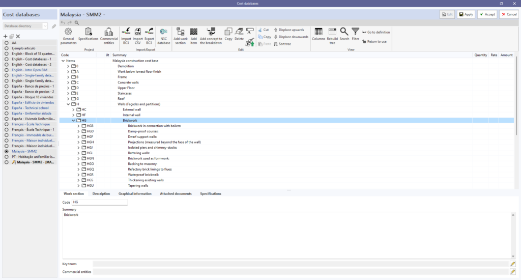 The new features of this version 2025.d are completed with the incorporation of new concepts in the cost databases and the updated set of measurement rules (both referred to as "Malaysia - SMM2").
