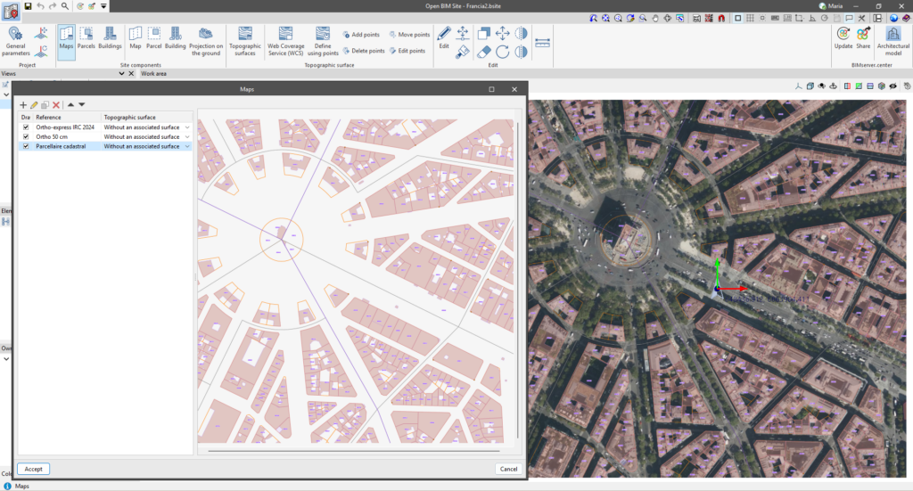 As of version 2025.d, Open BIM Site can obtain maps via WMS services from the following data source: