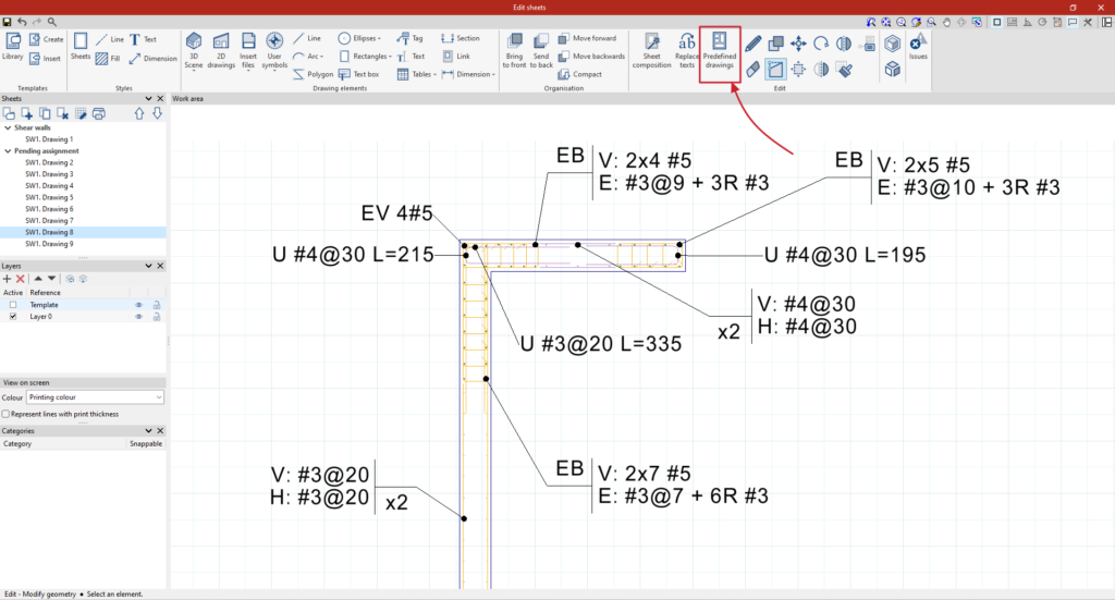 The position of the "Drawings" tab in the program has been changed. Additionally, it is now possible to create and edit the drawings of the thermal envelope with a wider range of tools and possibilities.