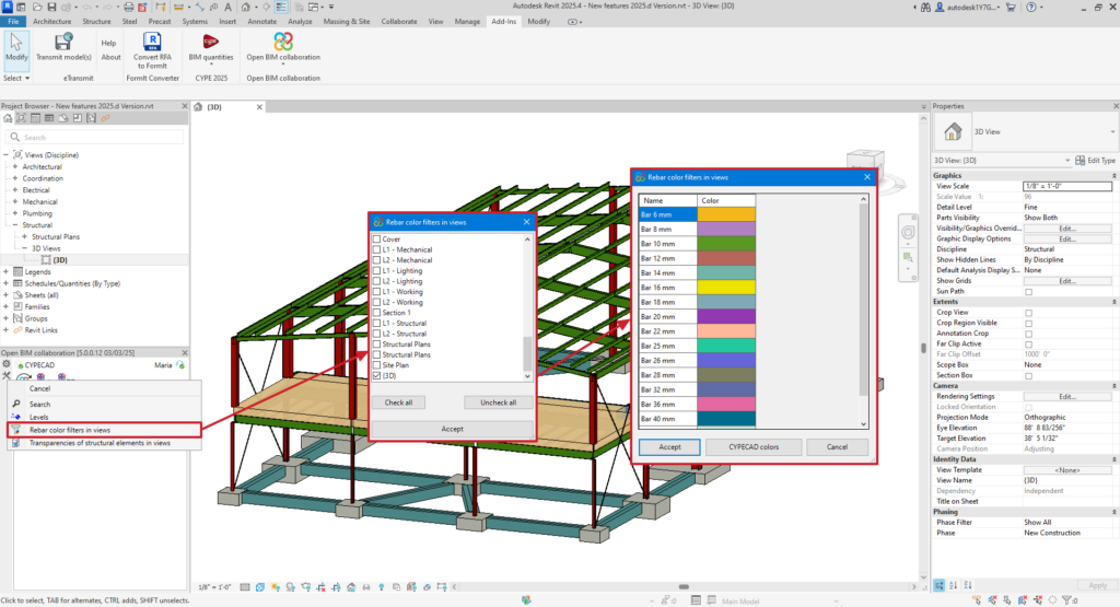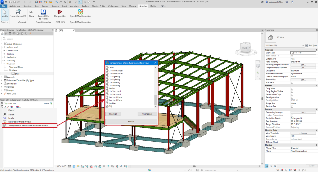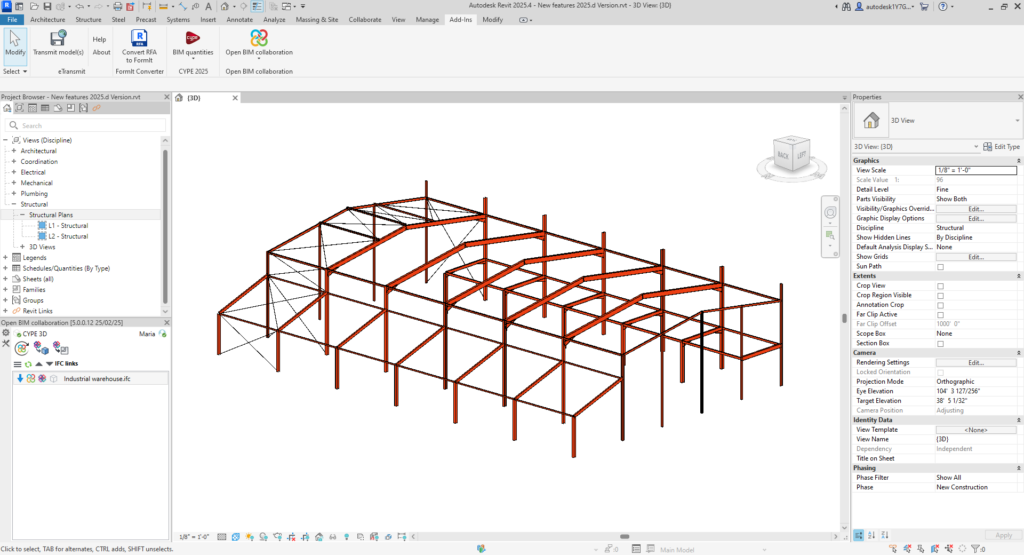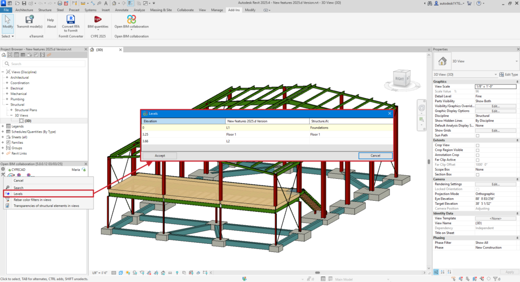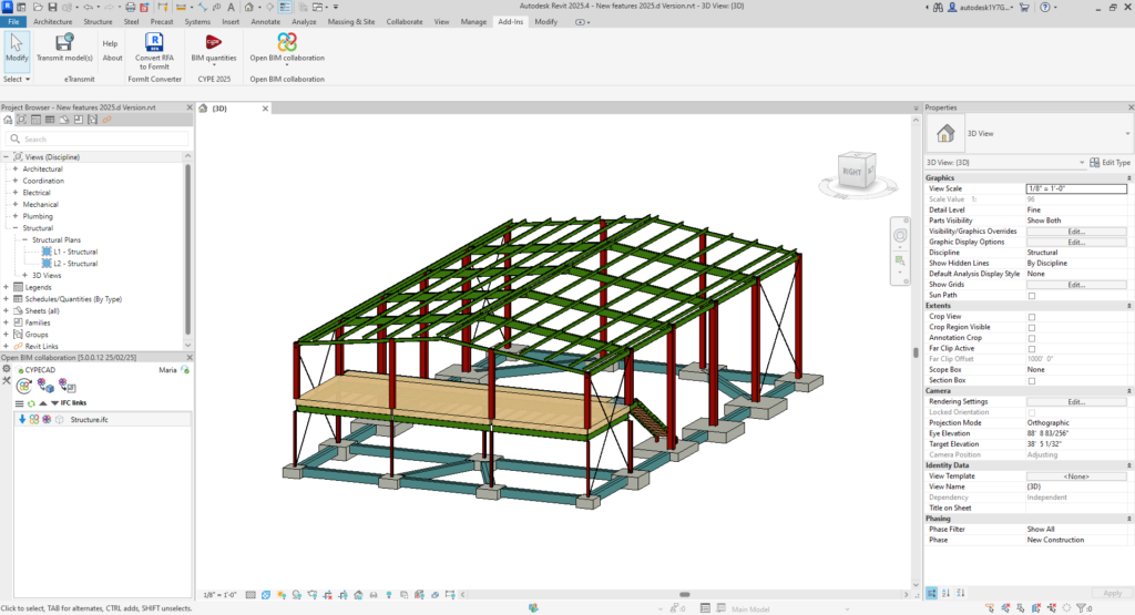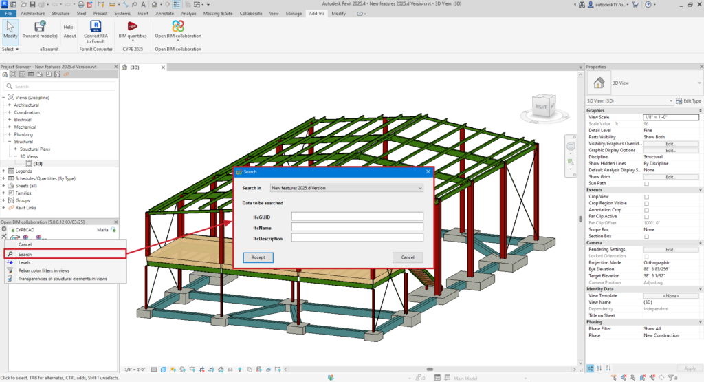 In version 2025.d, the ability to convert steel structures and 3D models integrated into native elements within the Revit environment has been added.