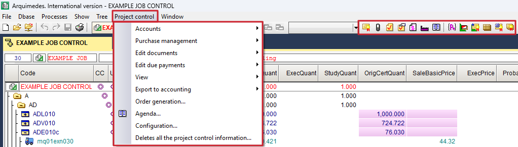 With this module, users can carry out the budgetary control of the job (financial control, purchasing control and cost centre control), accounting and allocation to work sections and items, as well as all the features included in the "Arquimedes" module. Various levels of control can be used. Each level includes the possibilities and checks of the previous one.