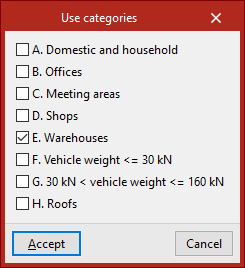 For the program, a use category constitutes a group of live load loadcases that are combined with the same combination coefficients with the other loadcases defined in the jobs.