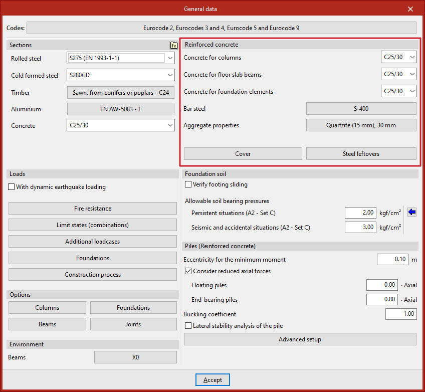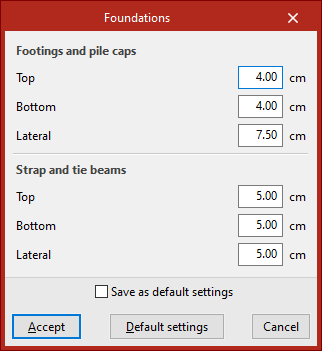 Defines the concrete used by default in the elements arranged in the "Foundation" tab (such as footings, pile caps, centring and tie beams).