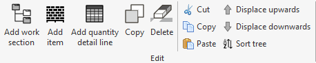 The bill of quantities can be modified manually either from the "Edit" group in the top toolbar of the "Bill of quantities" tab or from the menu that appears by right-clicking on the structure in the main window.