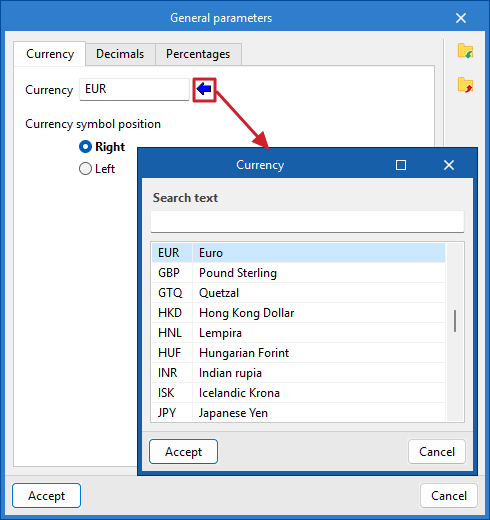 To use the quantities obtained in the bill of quantities in a simple way, the blue arrows located in the editing panel of the quantity detail lines next to the field of each variable (A, B, C and D) can be used.