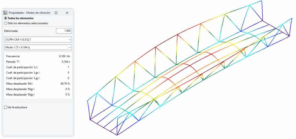 Engineers must ensure that the natural frequencies of the structure are well separated from the expected frequency range of external forces (such as passing vehicles or wind). If the natural frequencies coincide with the applied load frequencies, resonance can occur, causing significant vibrations and possible structural damage that can lead to collapse. It is therefore crucial to consider the natural frequencies during the design phase and to modify the properties or dimensions of the structure if necessary.