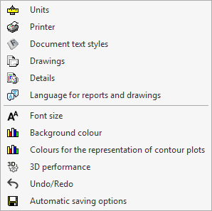 Clicking on this button displays a menu with different general configuration tools. The options displayed depend on the program being used.