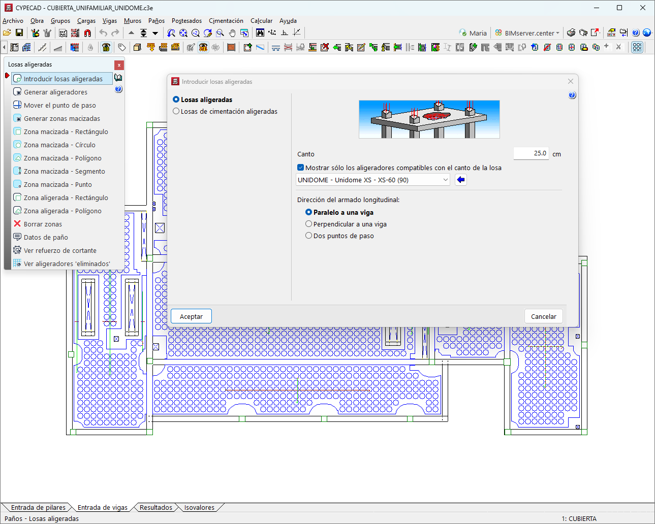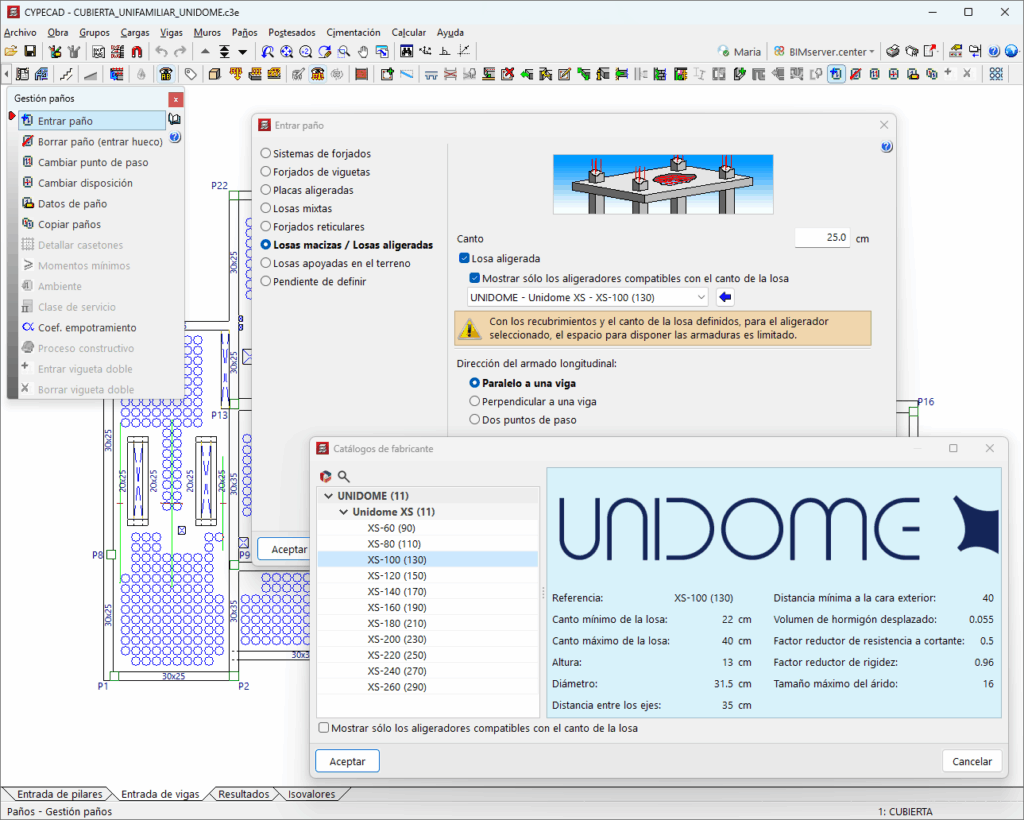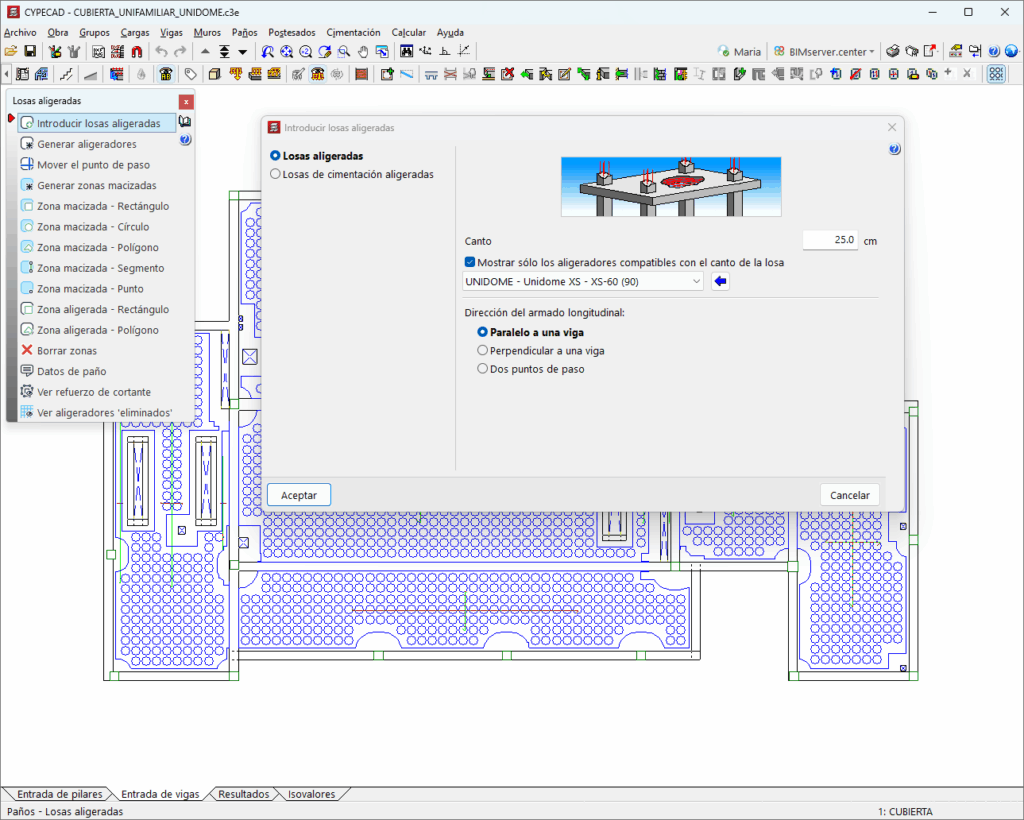 For CYPECAD to be able to analyse and design lightweight slabs, the user license must include the "Leightweight slabs" module combined with at least one of the following: "Flat slabs" or "Mat foundations and foundation beams" in addition to "CYPECAD".