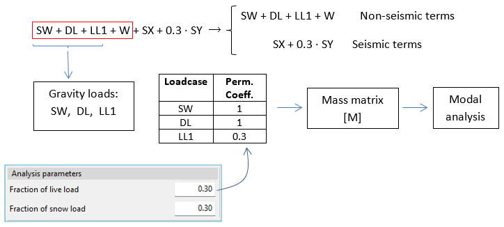 Therefore, given a seismic NLC of actions, users must look at the gravity loads involved and construct the mass matrix taking this into account.